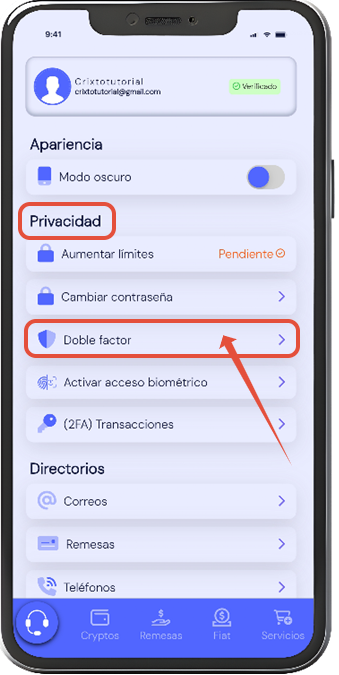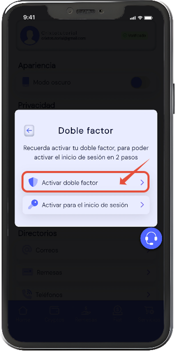 Activar doble factor de autenticación (2FA) en Crixto Pay